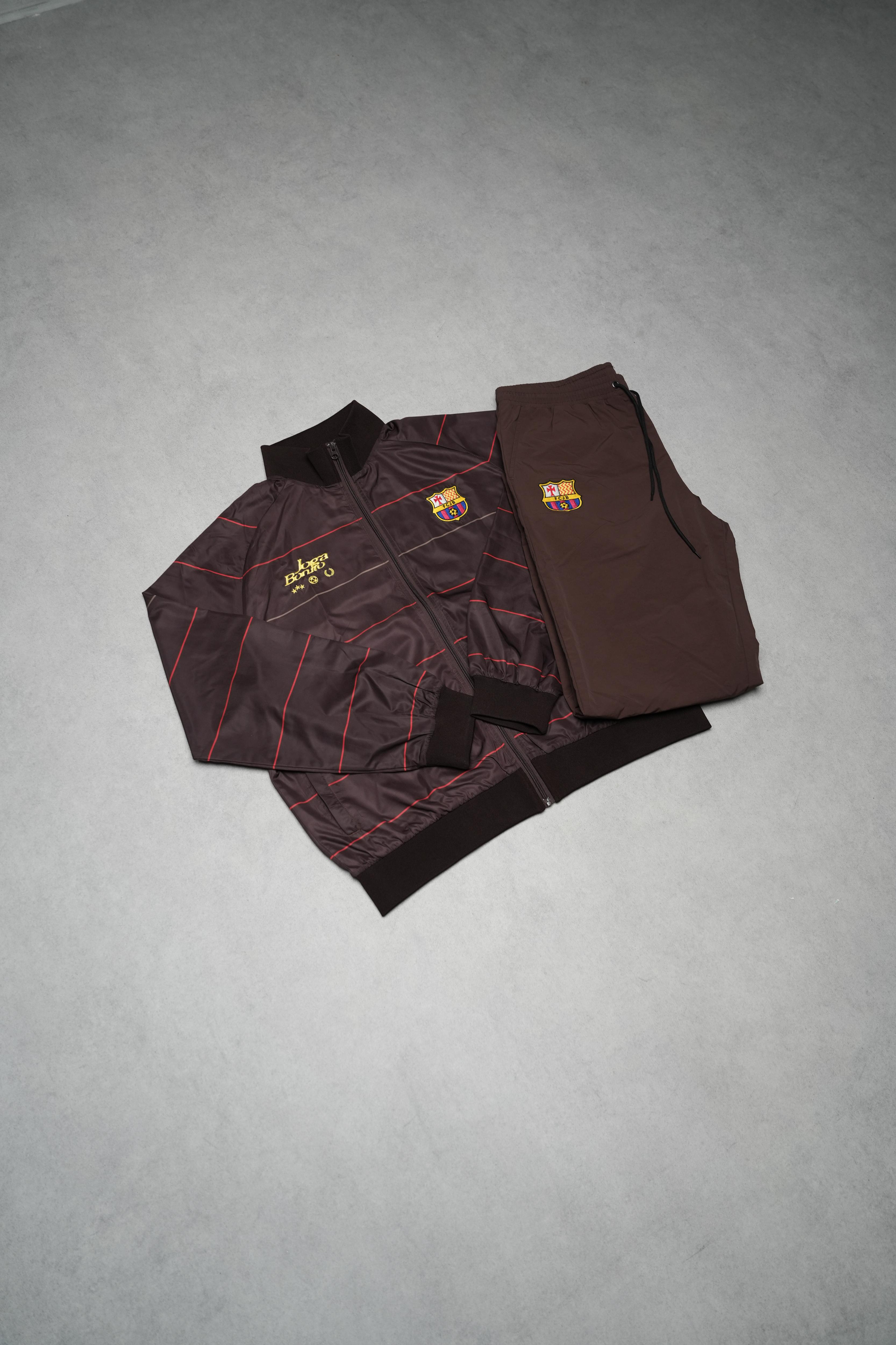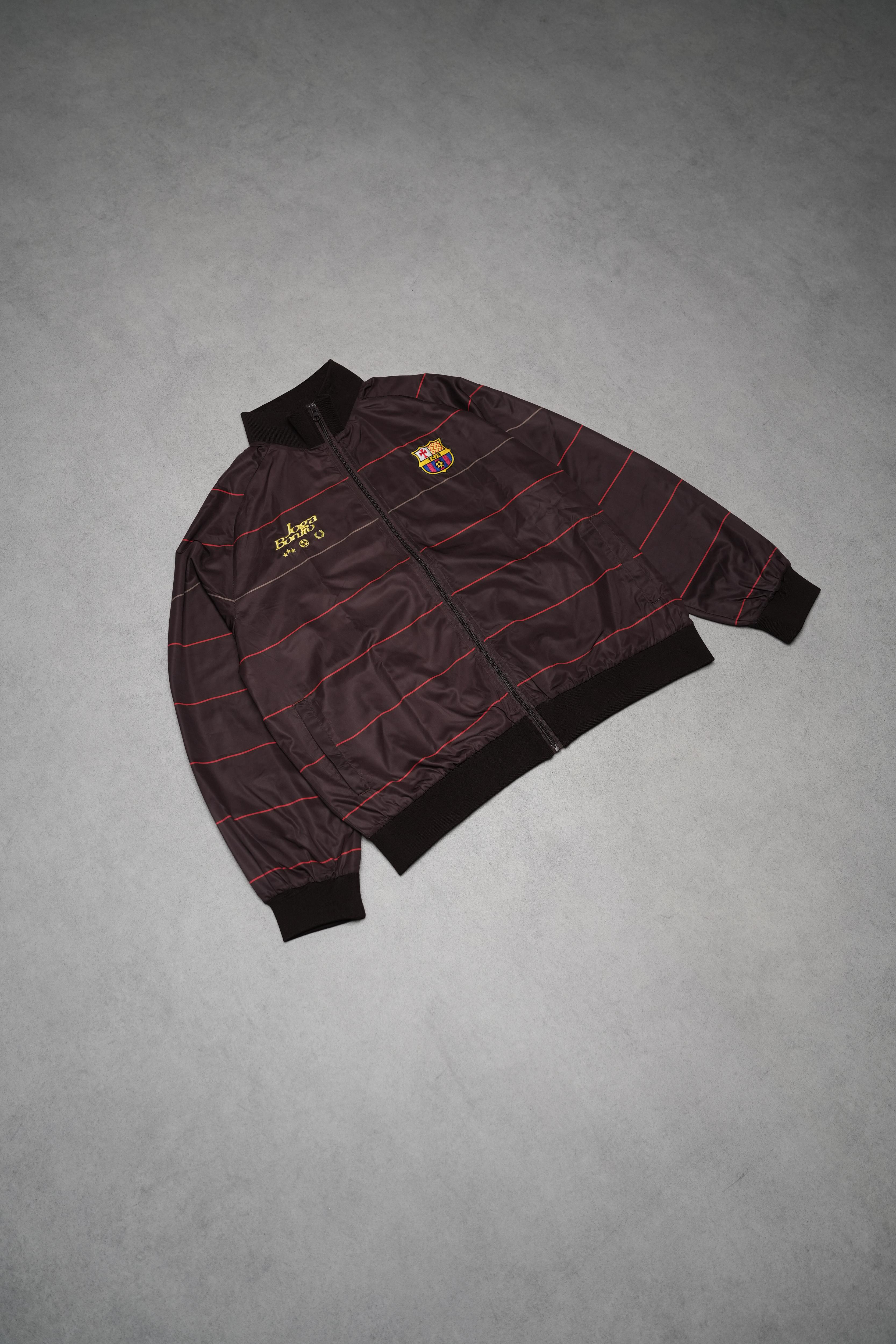 Design: Fully embroidered logos. Ribbing at waist, neck, and sleeves.